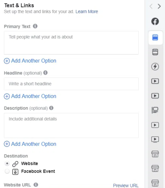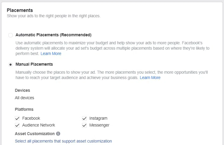 - Facebook надає різноманітні варіанти: стрічка новин, правий стовпець, історії, Instagram, Messenger, а також інші платформи, такі як Audience Network.