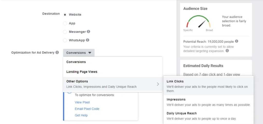 Facebook пропонує кілька варіантів цілей для реклами, що дозволяють зосередитися на конкретних досягненнях: